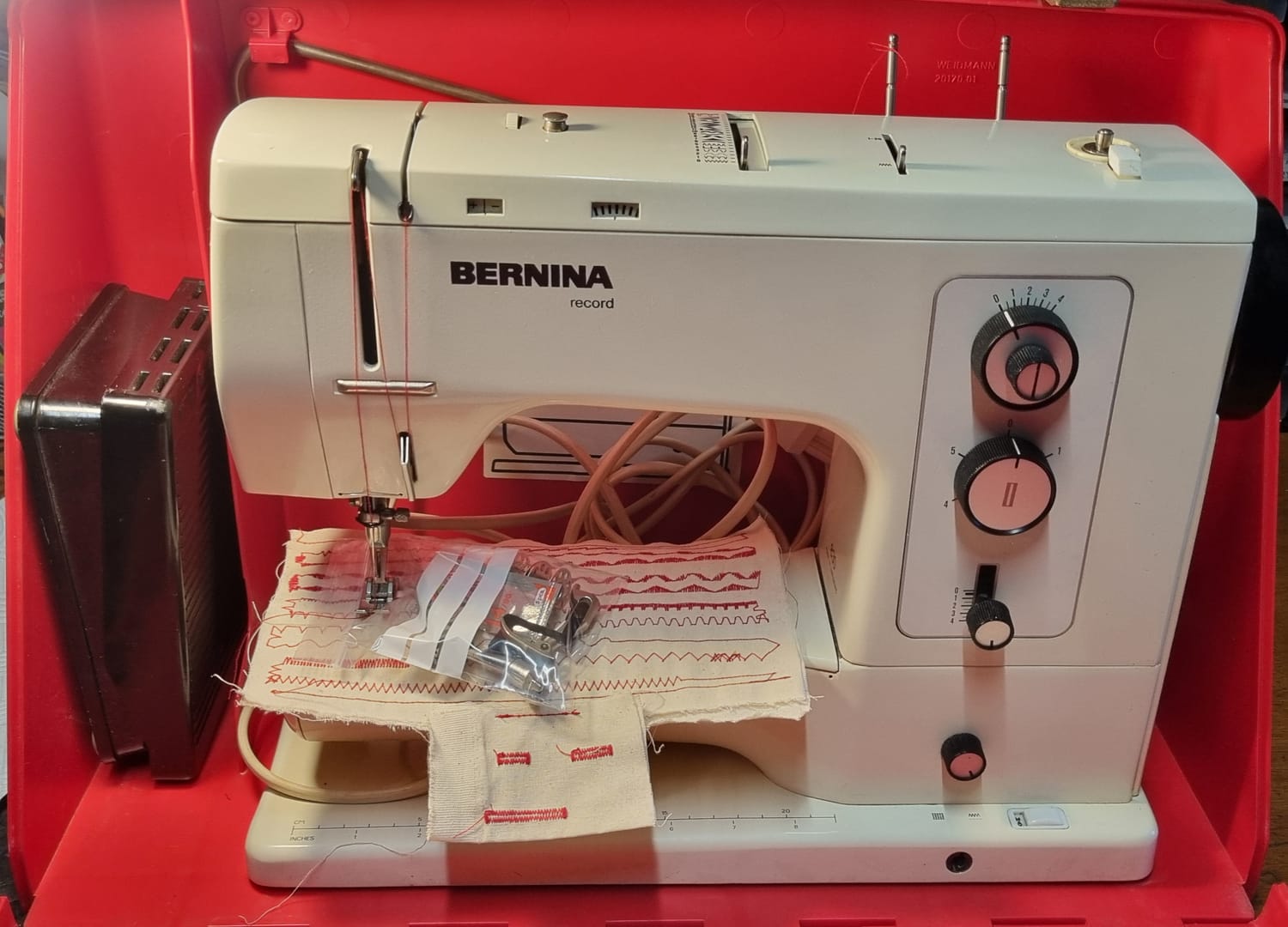 It comes with original bernina multi function foot, original foot control pedal and lead, 3 x spare bobbins, original spool case, pack of needles, 2 x extra feet, knee lifter, extension table and original hard carry case.